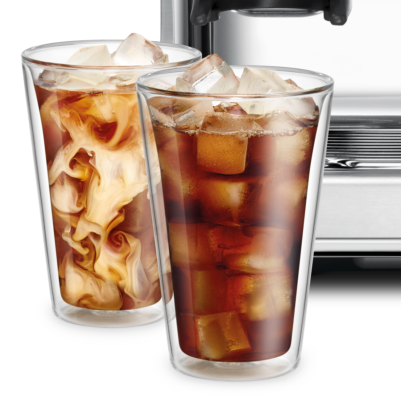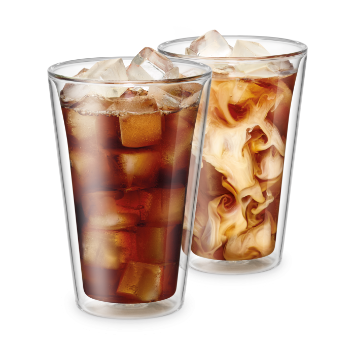 Each 400ml glass offers ample room for ice, espresso, milk, and more, while the insulated design keeps drinks colder for longer without exterior condensation.